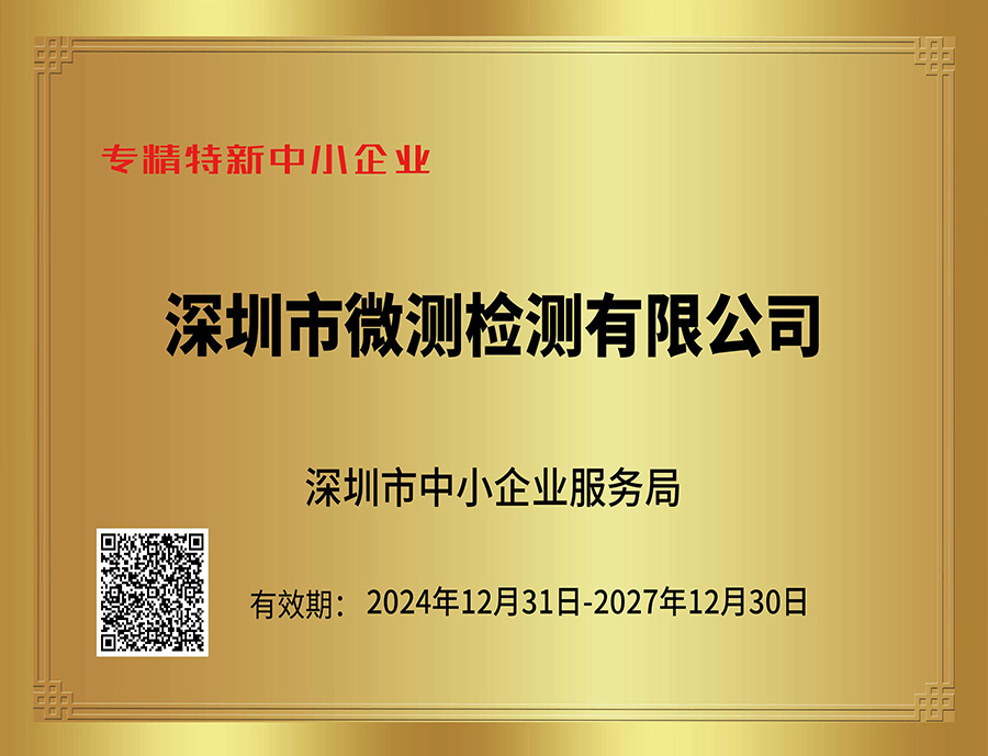 “專精特新”中小企業(yè)是指具有專業(yè)化、精細化、特色化、新穎化等四大特征的中小企業(yè)。企業(yè)通常專注于某一特定細分市場,擁有獨特的技術或工藝,產(chǎn)品或服務具有較高的附加值和顯著的經(jīng)濟、社會效益。微測檢測憑借其在檢測領域的專業(yè)專注、精益求精、獨特的技術優(yōu)勢以及持續(xù)的創(chuàng)新能力,榮獲“專精特新中小企業(yè)”稱號。